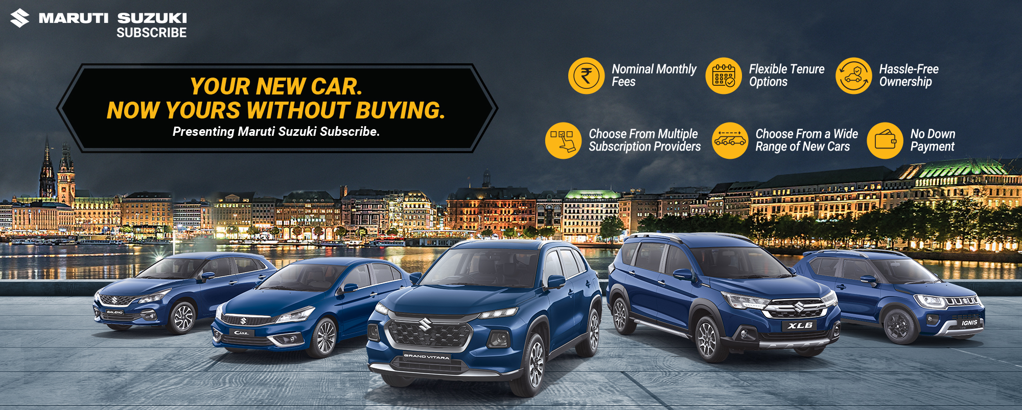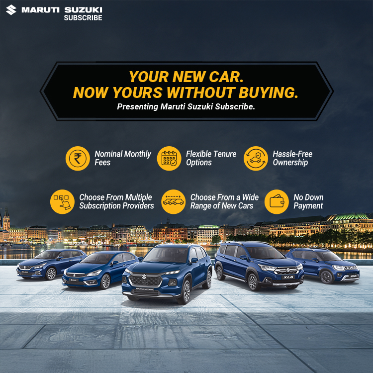 Maruti Suzuki Subscribe enables all customers to enjoy driving their preferred Maruti Suzuki cars without having to deal with all the financial responsibilities that come with owning a car.All you need to do is opt for a monthly subscription plan at a fixed monthly fee, which includes the routine maintenance and insurance costs, and choose a flexible tenure. At Patel Motors in, NEXA Freeganj Road Ratlam, Ratlam, all Hatchback, Sedan, SUV, the MUV models line-up includes Baleno, Invicto, EVitara, Jimny, Ciaz, Ignis, Fronx, Grand Vitara, XL6. Here, you will enjoy Maruti Suzuki Subscribe benefits such as: